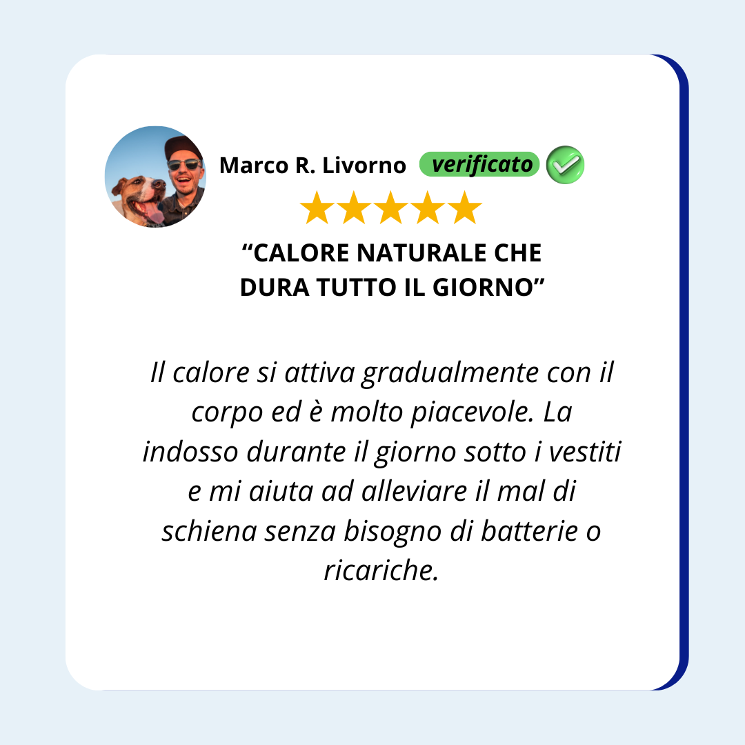 “Il mal di schiena si insinua nelle giornate, limita i movimenti e cambia il modo in cui ti siedi, cammini, lavori. Diventa una presenza costante, difficile da ignorare. Il calore giusto può fare la differenza tra sopportare il dolore e tornare a muoverti con naturalezza.”
